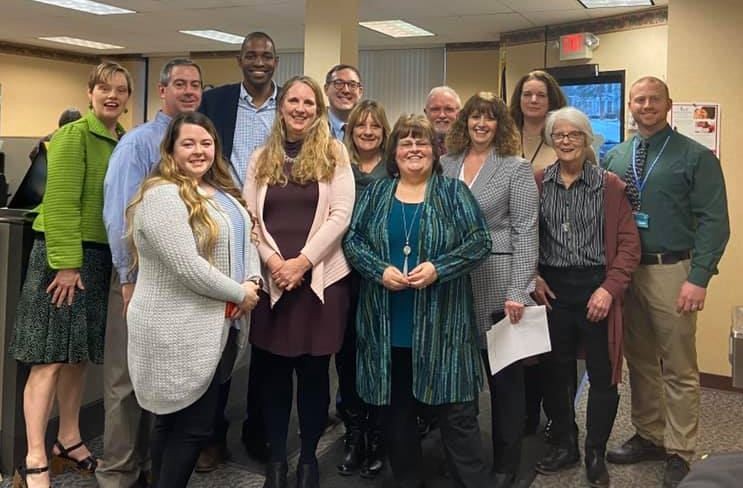 Pictured: (back row) Sarah Lopez, DOL Labor Services Rep., Jim Howard, DOL Labor Services Rep., Congressman Antonio Delgado, Chris White, DOL Associate Commissioner, Beth Kilts, Otsego Co. Employment & Training Counselor, Alan Sessions, CDO Disability Resource Coordinator, Mary Jane Kelley, DOL Workforce Programs Specialist, Cheri Hess, Supervising Labor Services Rep., Bhala Jones, CDO Front Desk Clerk, Cameron McMicken, Broome-Tioga DOL Business Services Rep.