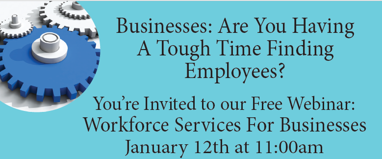 You’re Invited to our Free Webinar: Workforce Services For Businesses on January 12th at 11:00am!