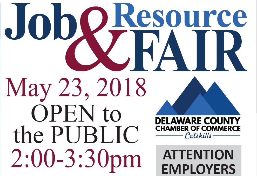 Employers: Free to Participate! Call the Delaware County Chamber of Commerce at 607-746-2281 to reserve your spot.