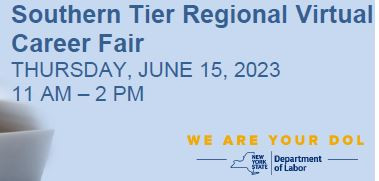 You're invited to the NYSDOL Southern Tier Region Virtual Career Fair on Thursday, June 15th from 11am-2pm!