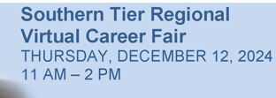 Southern Tier Regional Virtual Career Fair December 12, 2024, 11am to 2pm
