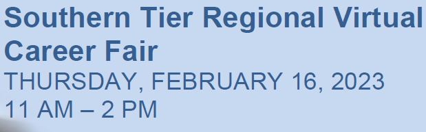 The NYS Department of Labor is hosting a virtual Southern Tier career fair on Thursday, February 16th, from 11:00am to 2:00pm.