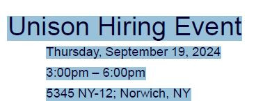Unison Hiring Event , Thursday, September 19, 2024